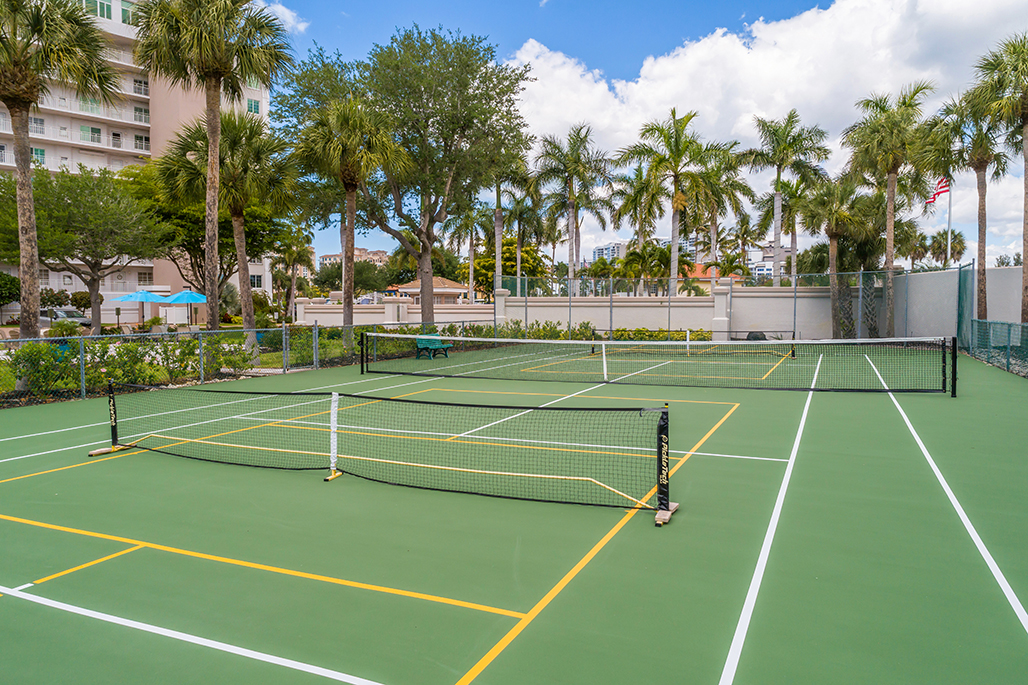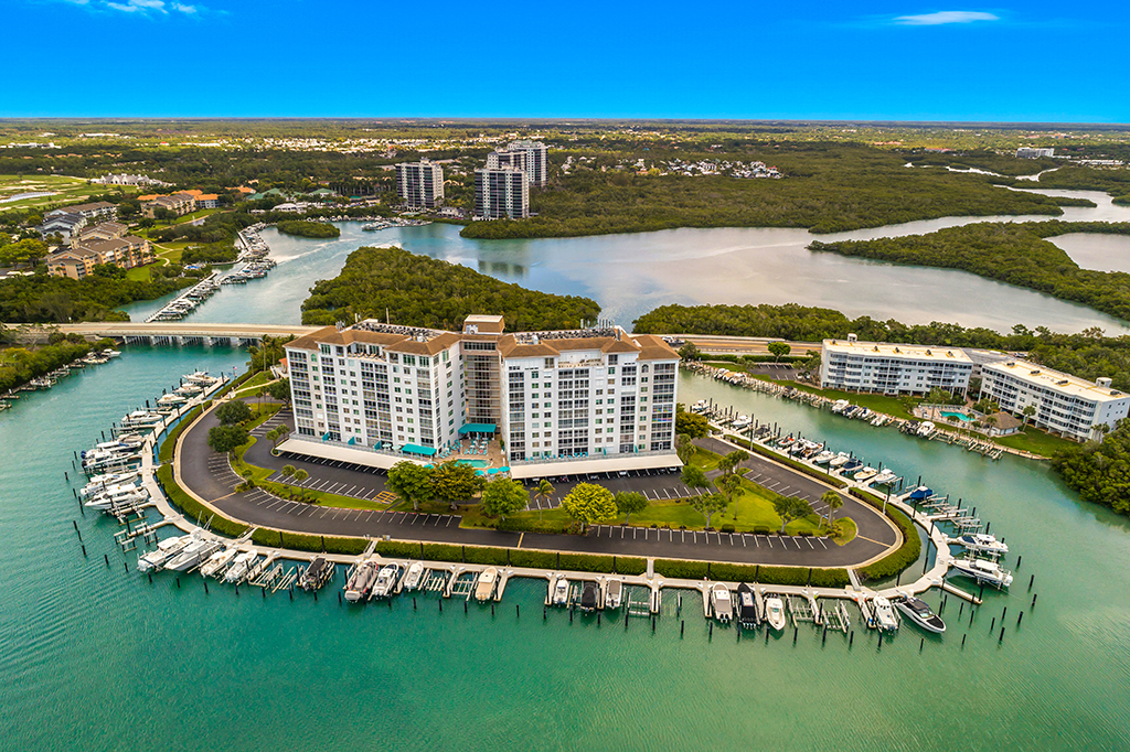 - Timeless building design providing front to back waterfront views of the gulf, Wiggins Pass, back bay and mangroves, with open air walkways.